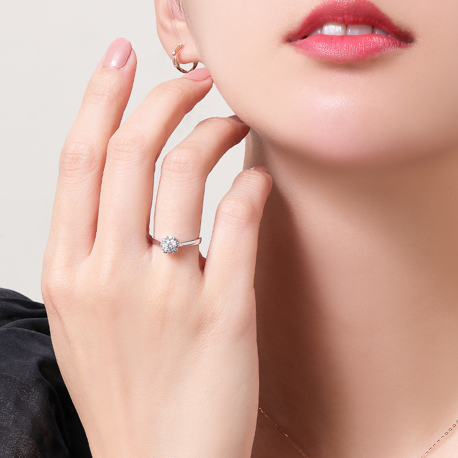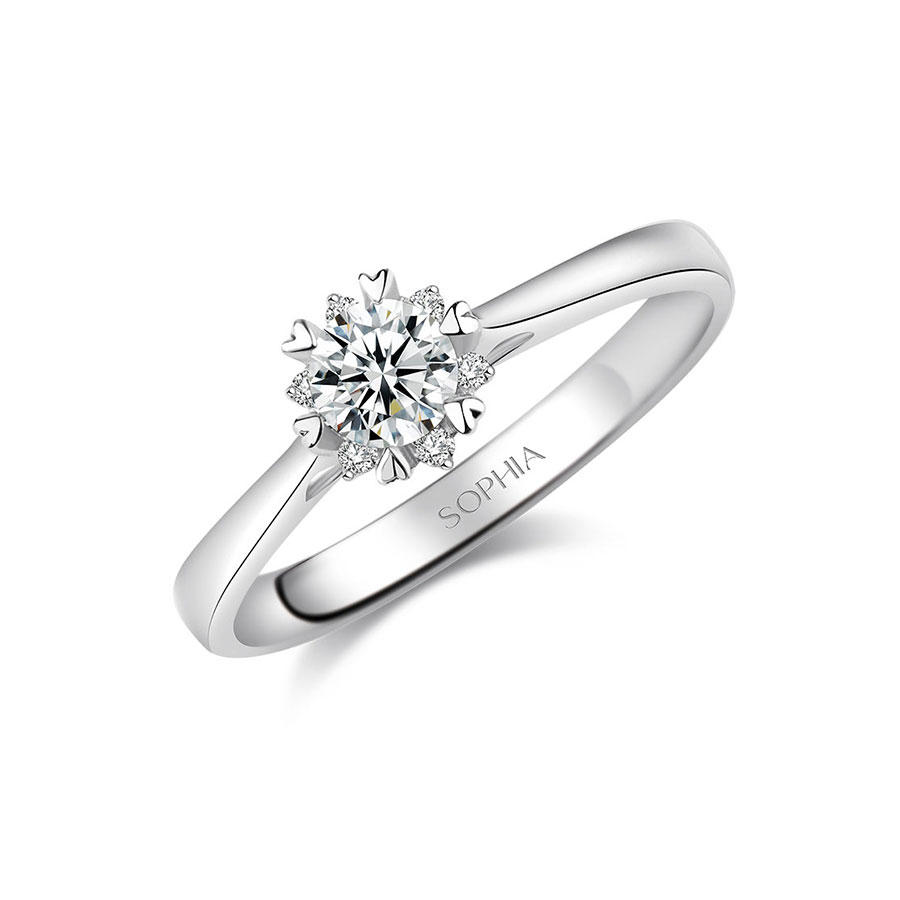 費洛拉系列於鑲口打造幸福造型,以心為出發,將幸福永恆銘記於二側戒身,永恆見證新世代的愛情。